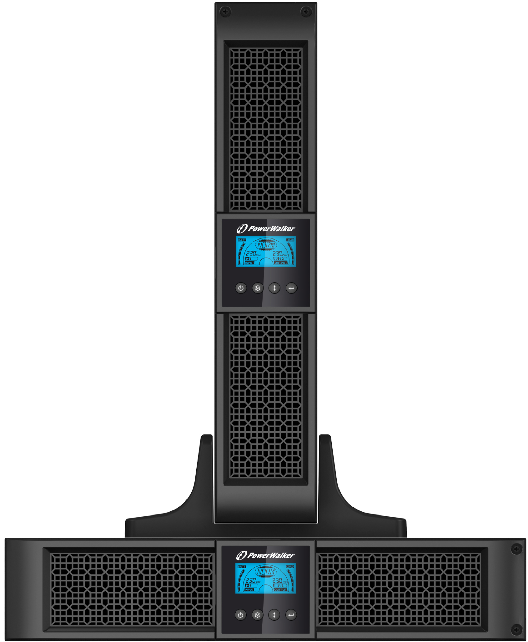 Due to its 2U design and adjustable LCD display, the UPS can be installed inside any regular 19” rack cabinet or used as tower system.