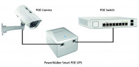 PowerWalker Smart PoE UPS is a compact device, designed specifically to safeguard your PoE camera from loss of connection. It is powered and charged from a single PoE line (data + power), allowing the installation to be better cable managed.