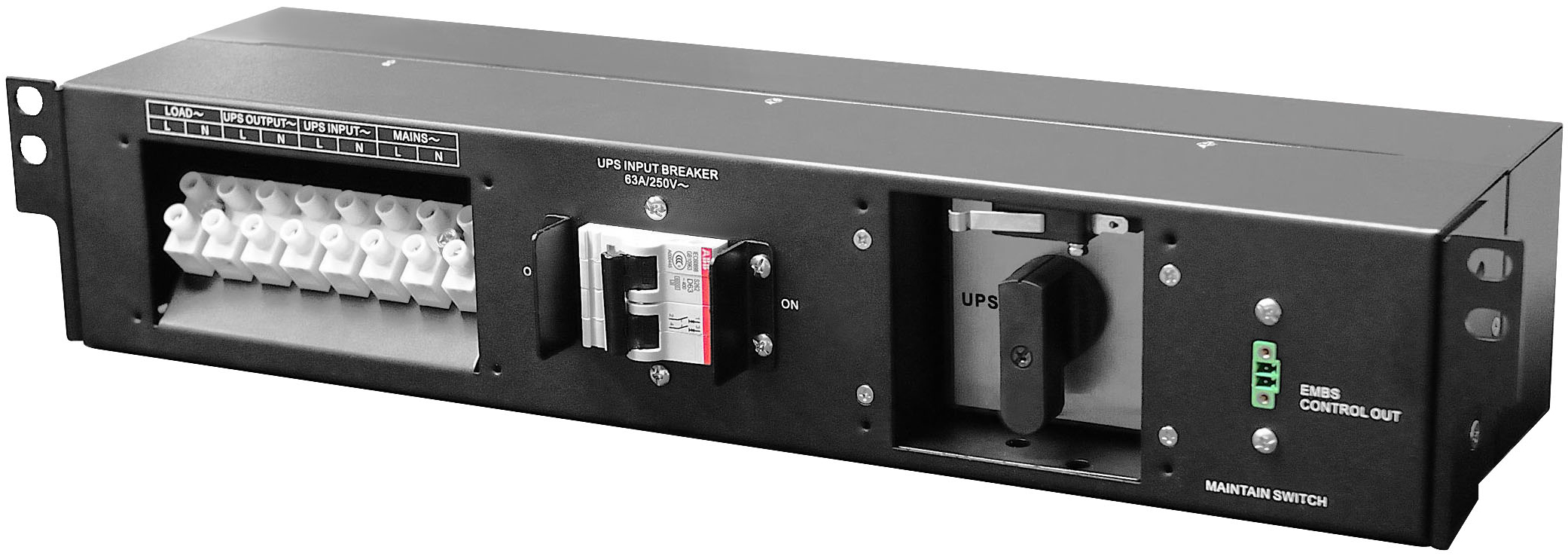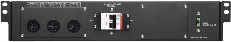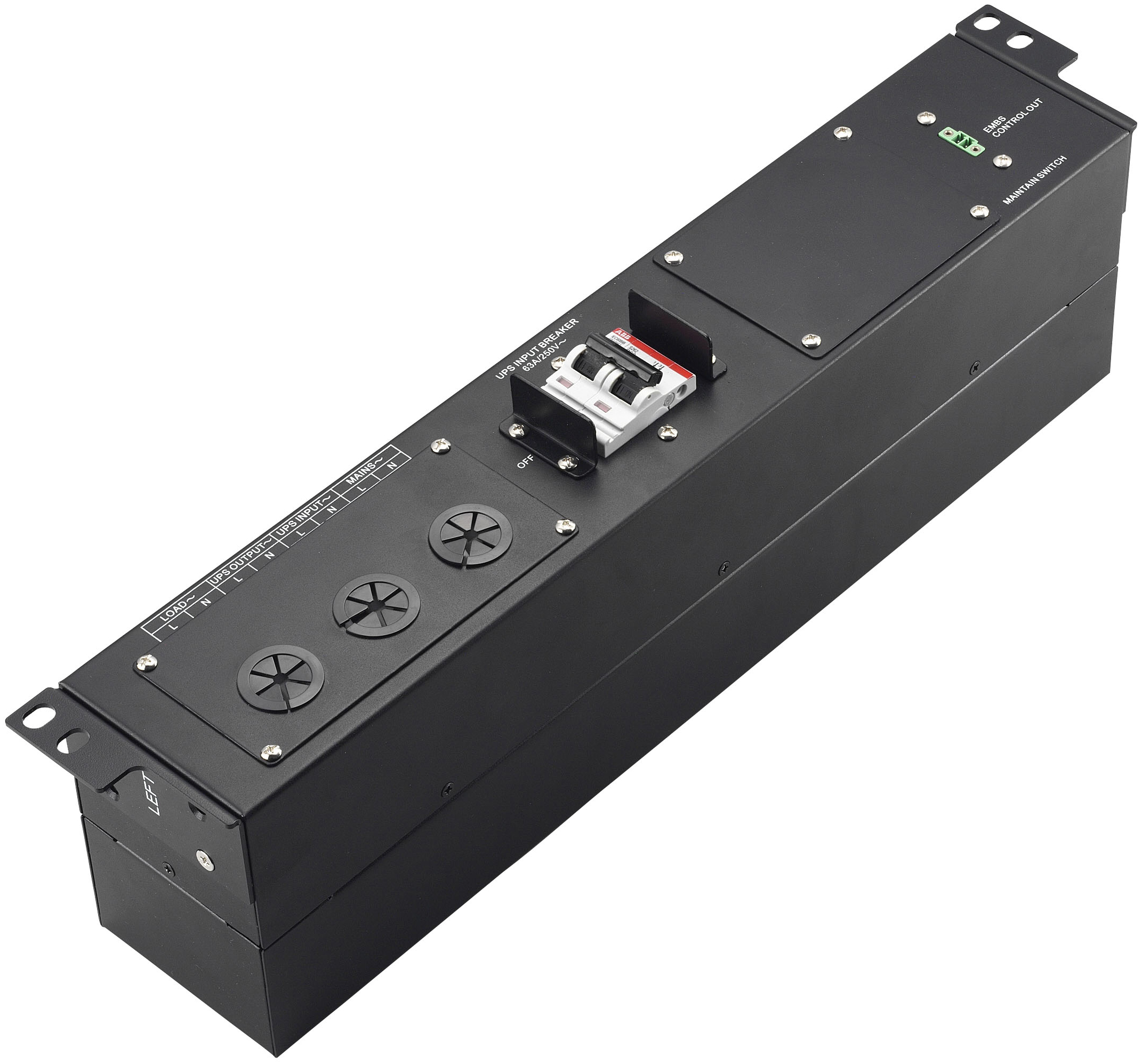 An external Maintenance Bypass Switch with function of a PDU (Power Distribution Unit). It provides continuous power without shutting down the connected loads during UPS scheduled maintenance or battery replacement. As a PDU it allows to distribute the power among several loads. It is recommended for UPSs rated 5000-10000VA