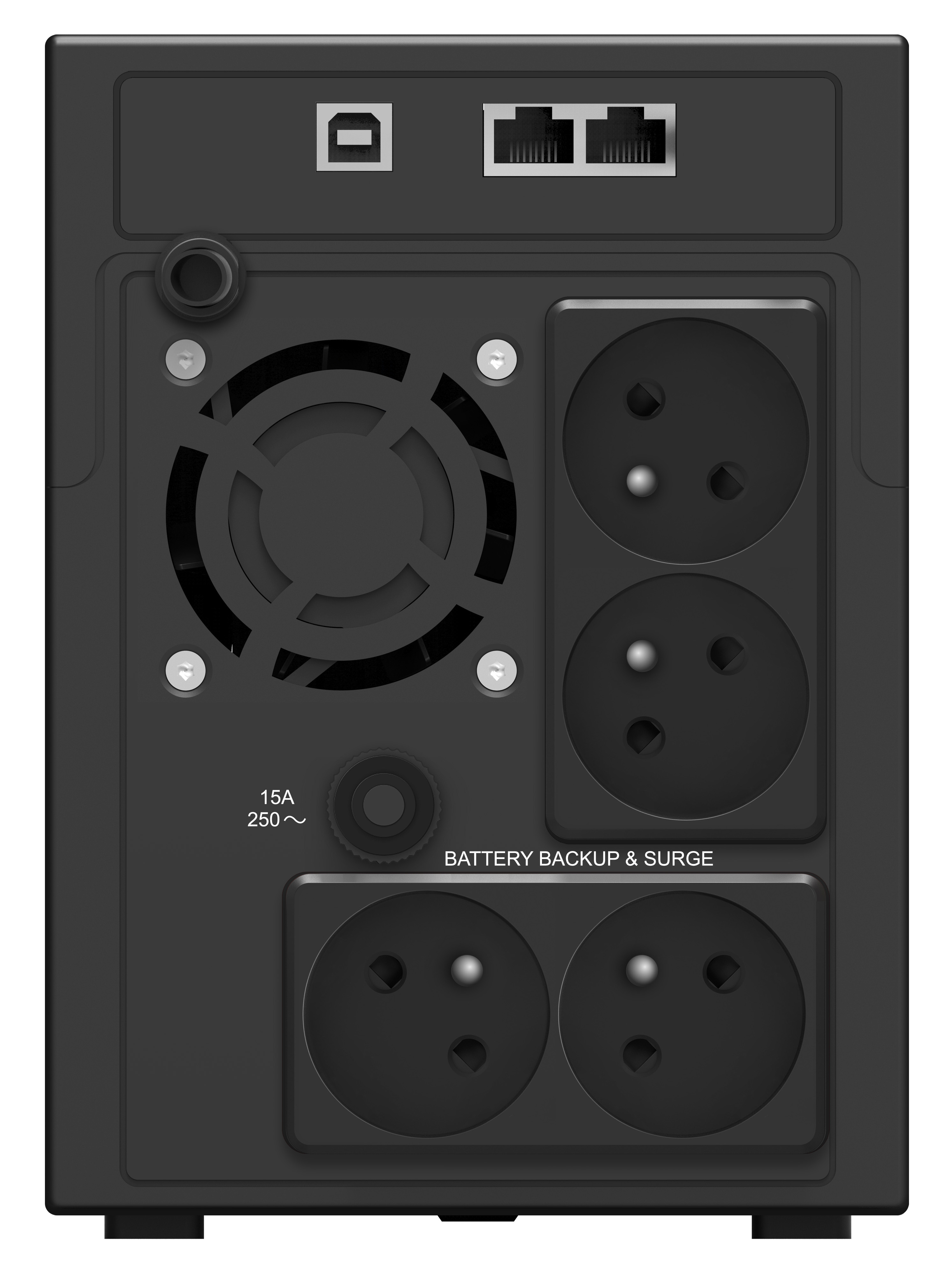 The UPS serves as an emergency power generator, which provides power to all connected loads (via batteries) during sudden blackouts. This ensures either a smooth bridging of power problems or enables a safe and orderly shutdown. The UPS protects sensitive hardware and software against voltage fluctuations that may occur during irregularities of the mains supply. This way loss of data, hardware problems and unnecessary wear can be prevented effectively.