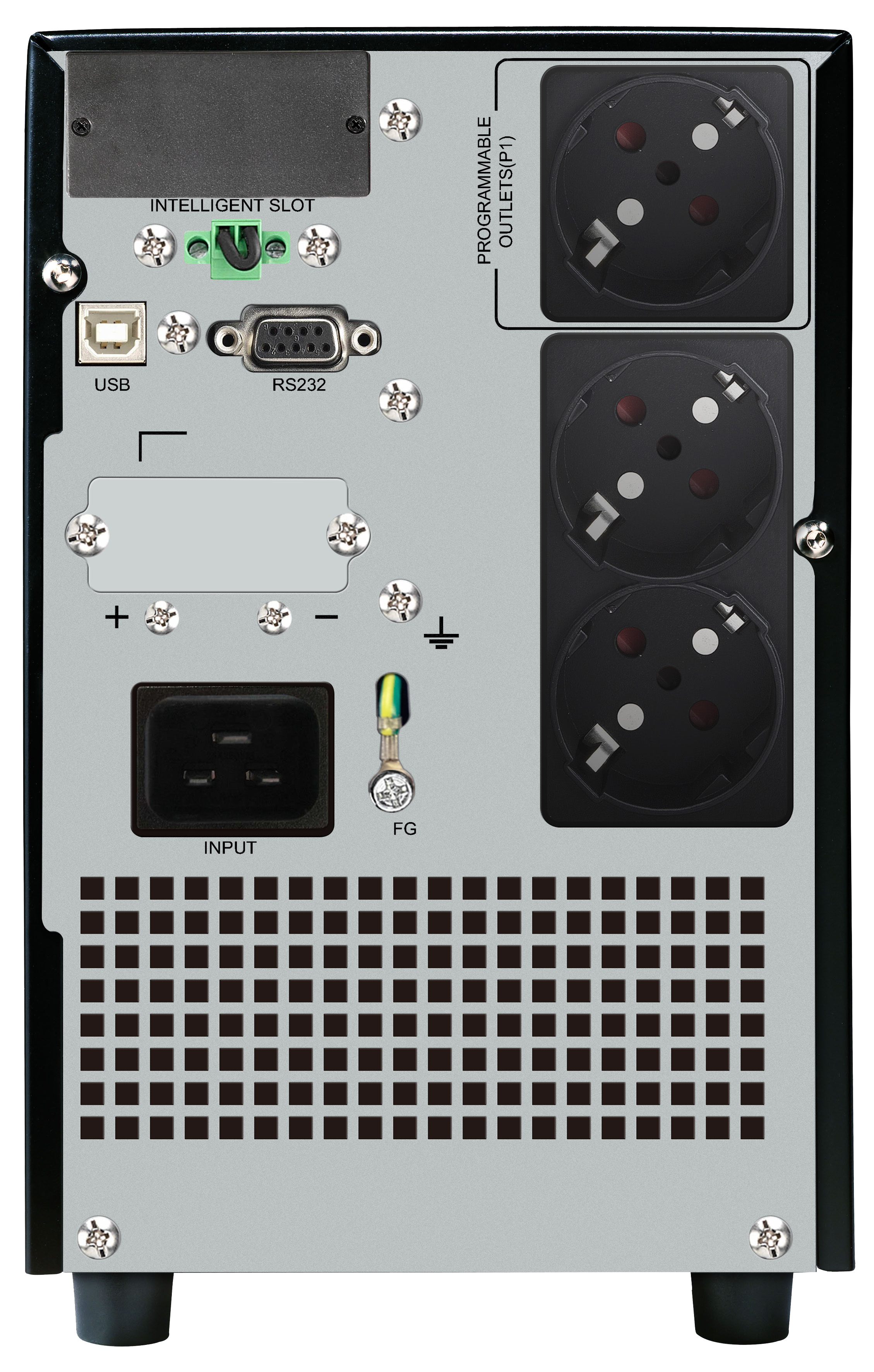 The programmable outlets and comprehensive LCD display present a high degree of functionality and flexibility that are rarely found in other line-interactive solutions. Additionally this series offers a variety of communication options, such as USB communication with software or without software (HID), or even communication via an optional network card (SMNP).